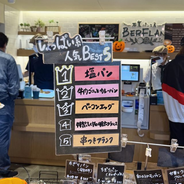 人気No.1の塩パンとNo.2のカレーパンの他、No.4の特製ふくやの明太フランス、クロワッサンサンド、チョコアンパンマン。