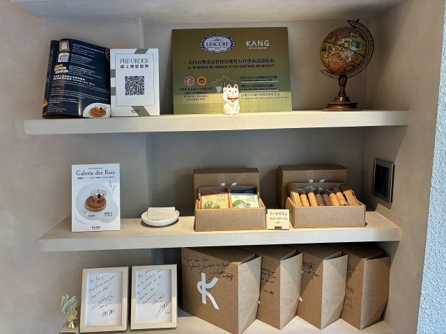 オーナーシェフの康豐柚 (Barry Kang)氏は、マンダリン オリエンタル 台北のベーカリーシェフを務めていた経歴を持つ実力の持ち主。朝は10時からオープンしていて、店内には可愛らしい招き猫の置物も発見。そのすぐ裏には、フランスの高級バターで有名なAOP認証バター「LESCURE(レスキュール)」の盾が誇らしげに飾られています。