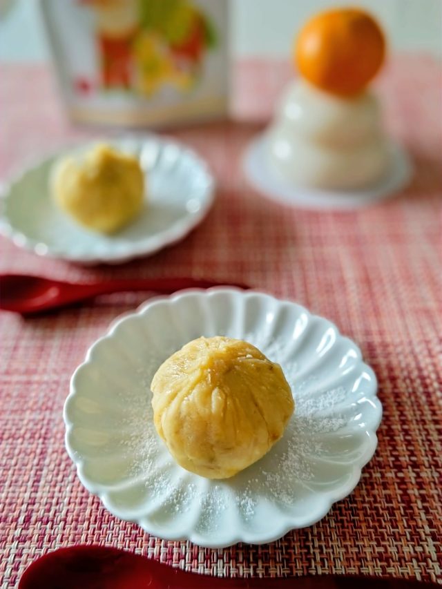 ほくほく系の焼き芋を使ったときは、ラップで茶巾絞りにするのもおすすめです。お正月のお菓子としても楽しめますよ。