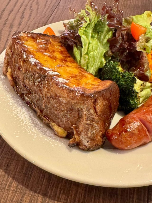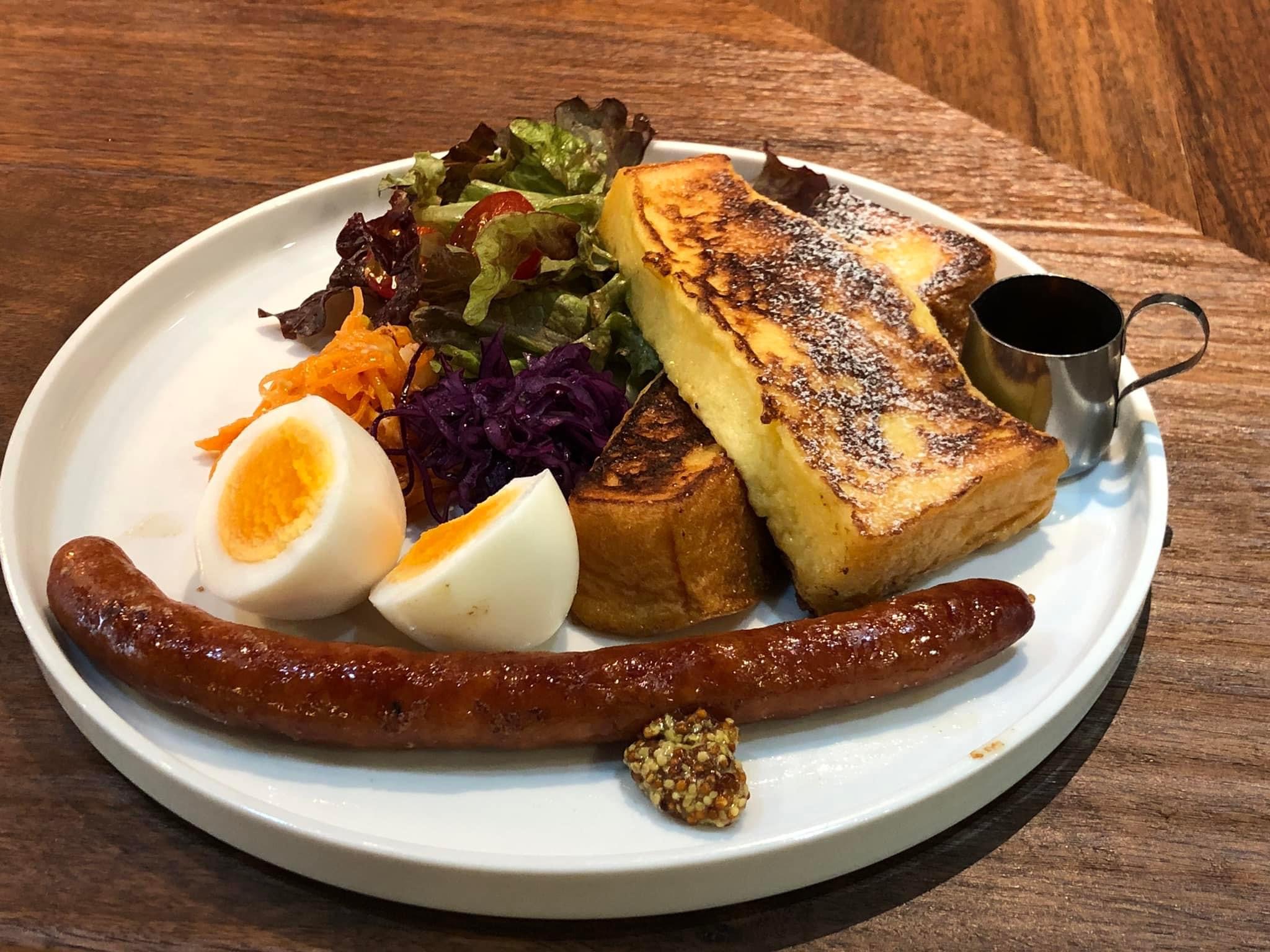 甘すぎず、野菜やソーセージとあわせて食事として楽しめるフレンチトーストです。