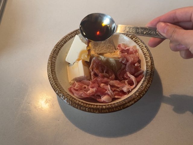 レンジで簡単!豚こま肉豆腐
