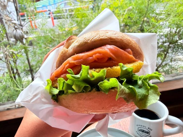 特にこのベーグルは多くの人にmustで食べてほしいっ。ベーグルは色々食べてきたけれど、外はカリッと中はもっちり。たっぷりサーモンと柑橘のうまみが口の中にジュワッと溢れて異次元のうまさです。