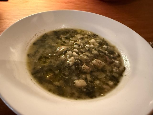 ミネストローネはグリーンベース。ジャガイモのホクホク感を楽しみながらいただきました。