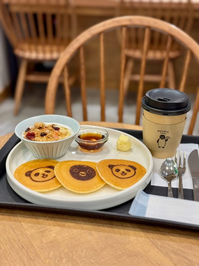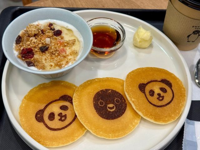 10時までのモーニングメニューは、トーストやパニーニのセットのほか、Suicaペンギンのパンケーキセットが!