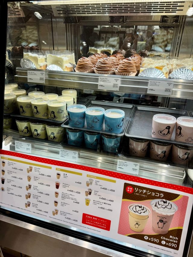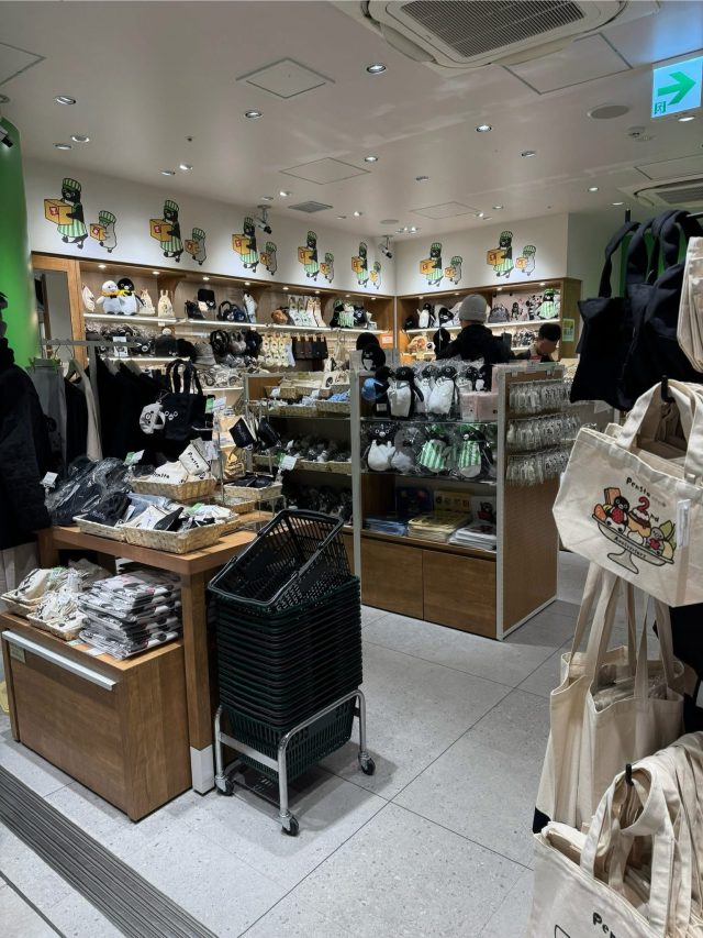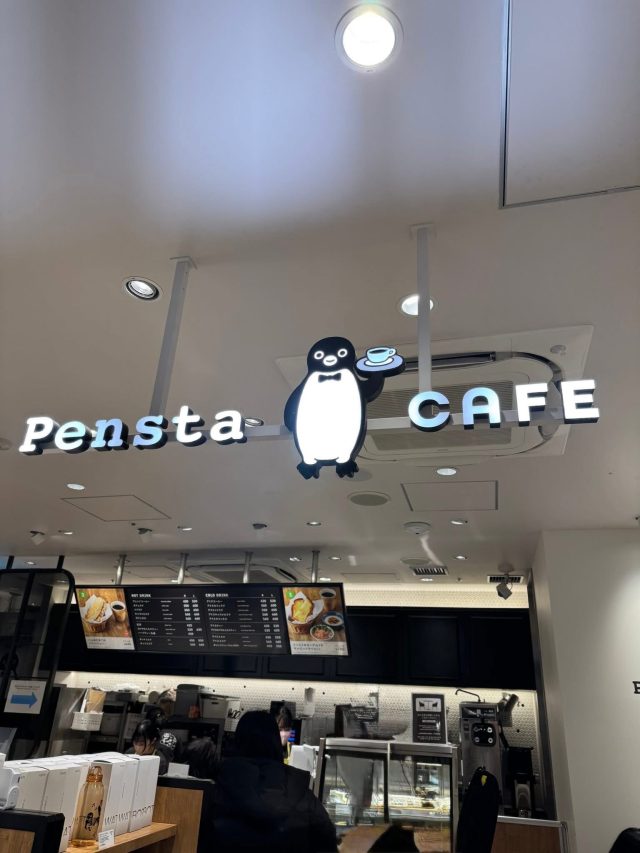 上野駅の改札内には、「ペンスタ」というSuicaペンギンのグッズショップがあり、その隣にはカフェテリアがあります。