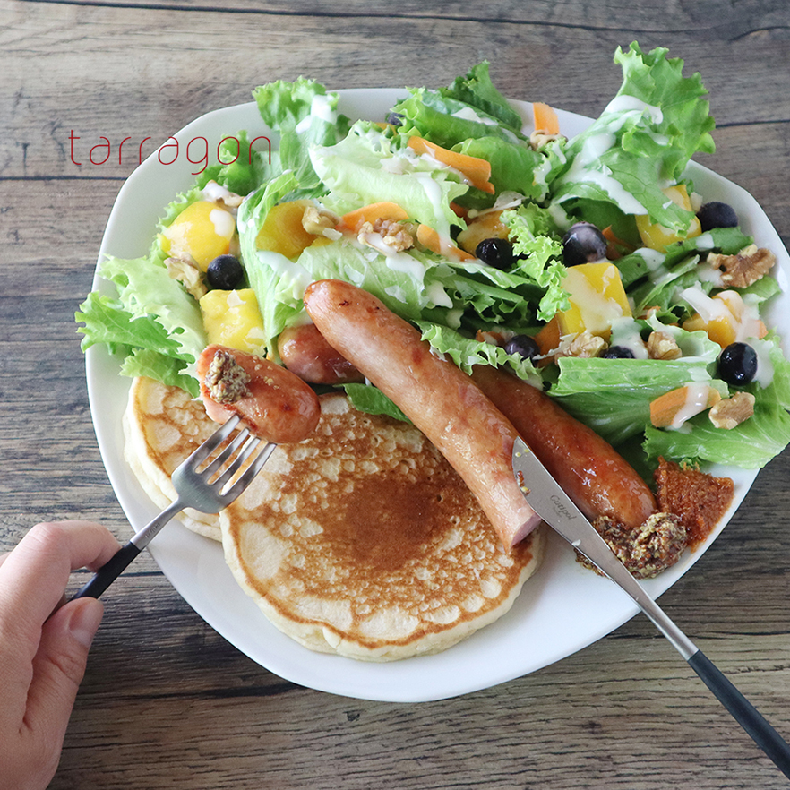 もっちり食感が楽しめる「米粉のパンケーキ」は、朝でも気負わずトライしやすい一品です。