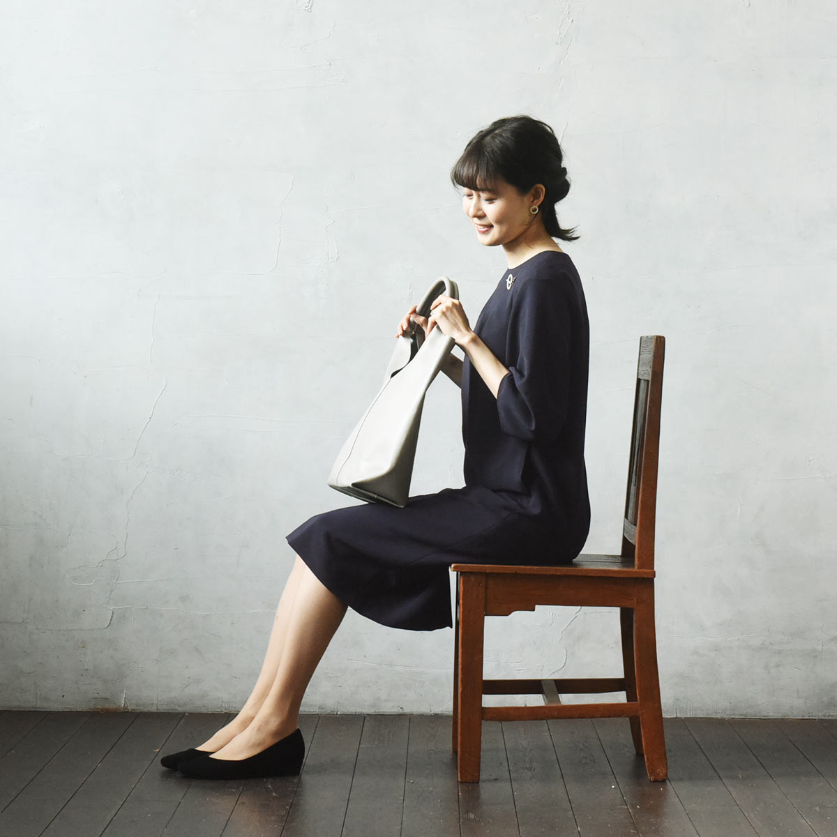 ハレの日の服は、「その日だけ」になってしまうのは勿体ないので、せっかくなら 仕事や普段、同窓会などのちょっとしたお出かけにも使えるシンプルなもの を選びたいなと思っています。