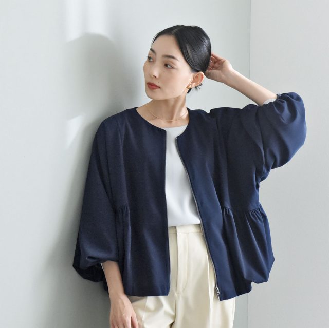 (▲着用アイテム:ジップブルゾン/ネイビー、くしゅくしゅインナー/オフホワイト)