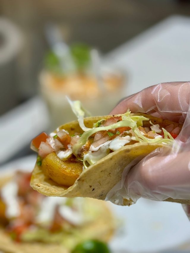 こちらのタコスは、メニュー名の通り魚のフライが入っていてカリっとした食感も楽しめます。