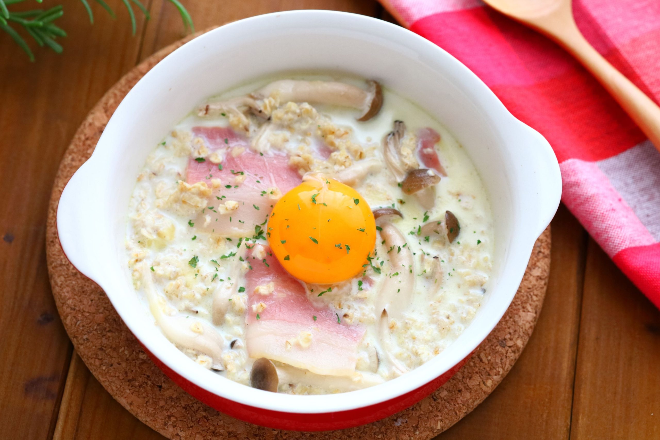 レンジ5分で完成!ダイエット向き♪「濃厚カルボ風オートミールリゾット」