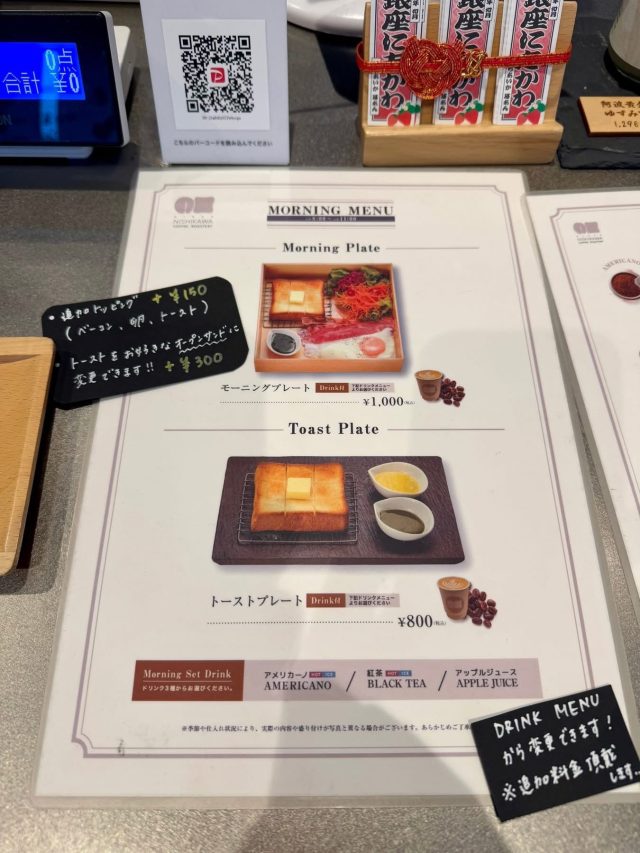 朝はモーニングメニューがあり、モーニングプレートとトーストプレートの2種類。
