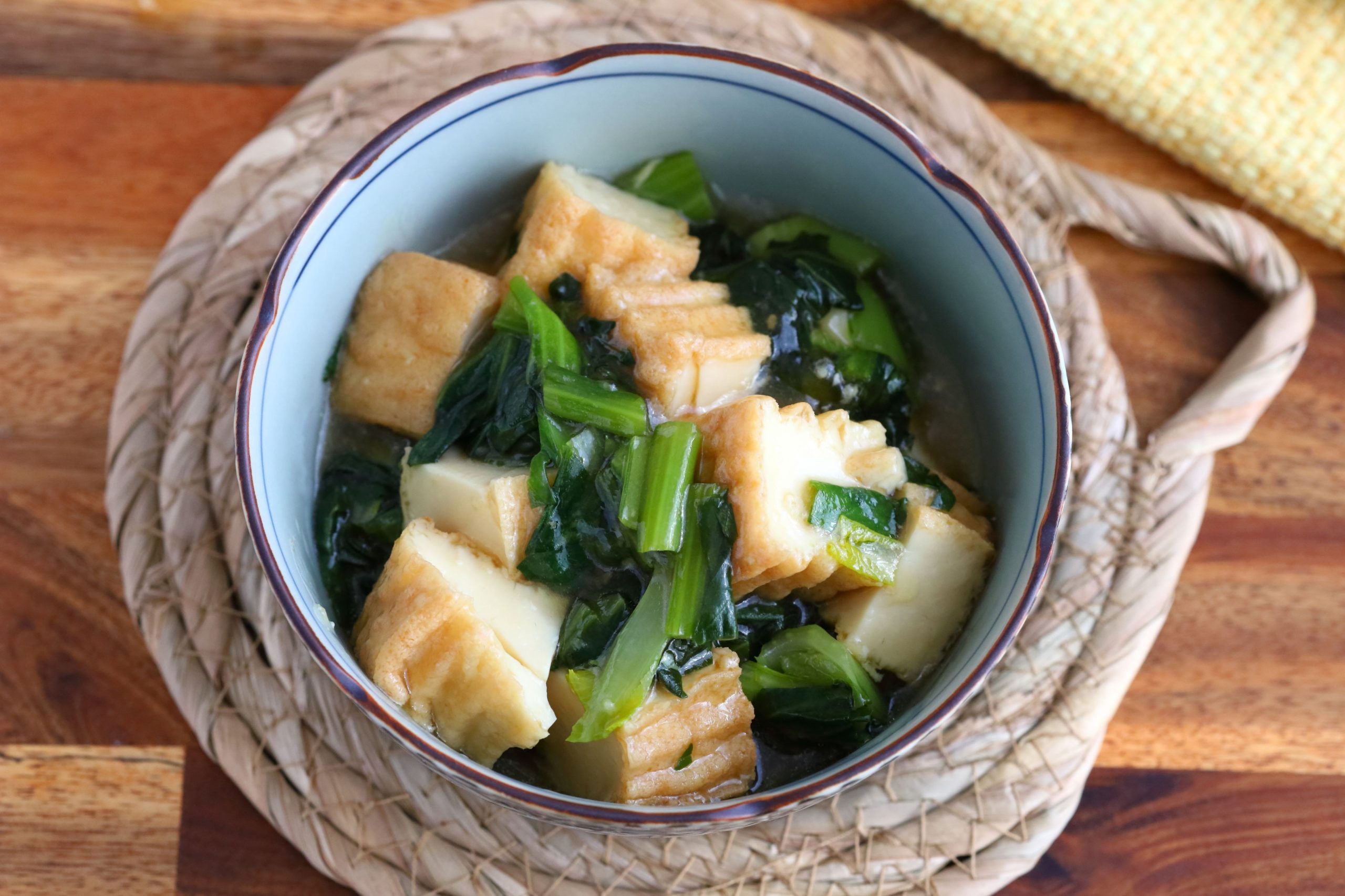 朝はレンジにお任せ!体が温まる「小松菜と厚揚げのしょうがあんかけ」