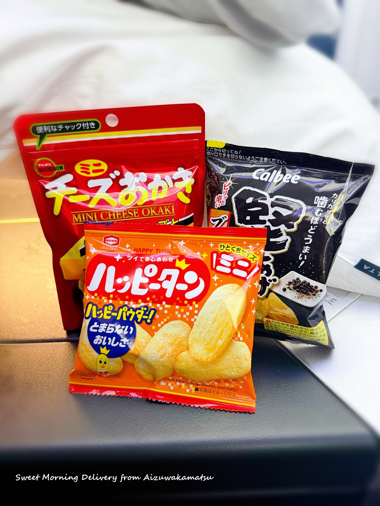 ちなみに今回羽田発、シアトル着便ではお菓子が