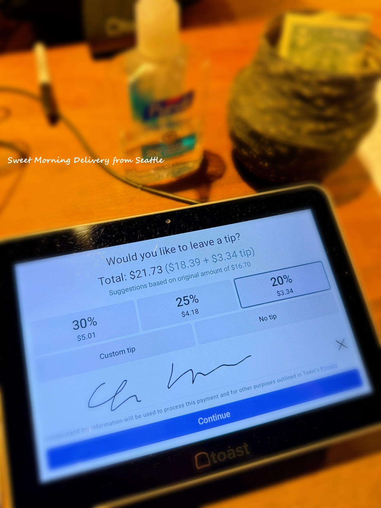 しかも、カフェなのに、自分で砂糖入れて、蓋閉めて、持って帰るのに、30%、25%、20%って。レストランだってこんな強気なチップ設定してないですよ!
