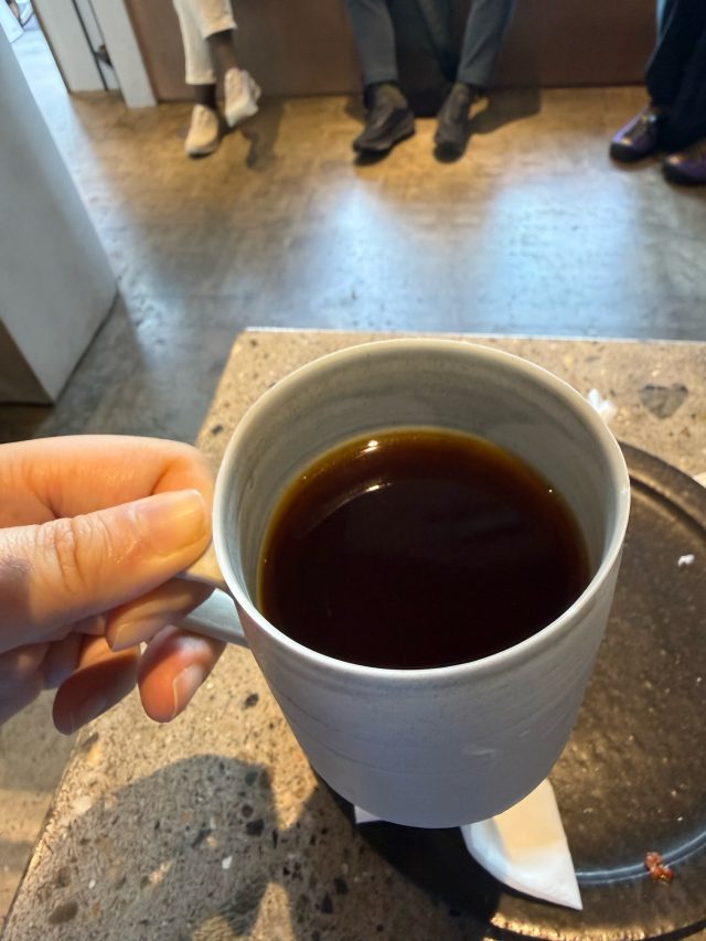 コーヒーをいただく時、器はとてもとても大切だと思ってます。こちらのカップは作家さんが作ったもの。美しい色合いもさることながら、飲み口がうすーくしてあって、飲み口が最高なのです。コーヒーを邪魔しないカップといいますか。これは味わっていただきたいです。