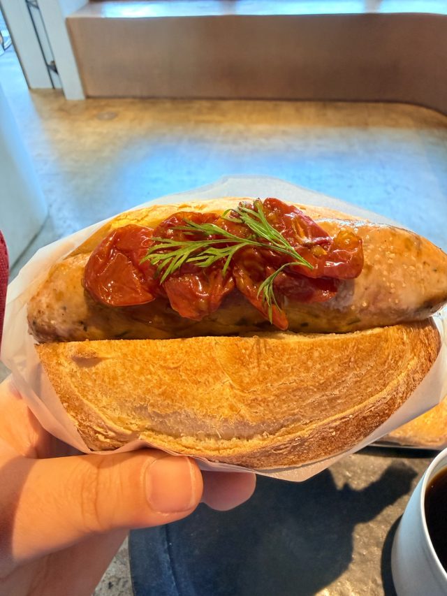 これが絶品でした。パンは自家製パンとのこと。フランスパンのようで外はカリッと、中はモチモチ。絶品CESソーセージの肉汁をしっかりと吸ってくれます。ドライトマトも旨味たっぷりでいい仕事をしてます。