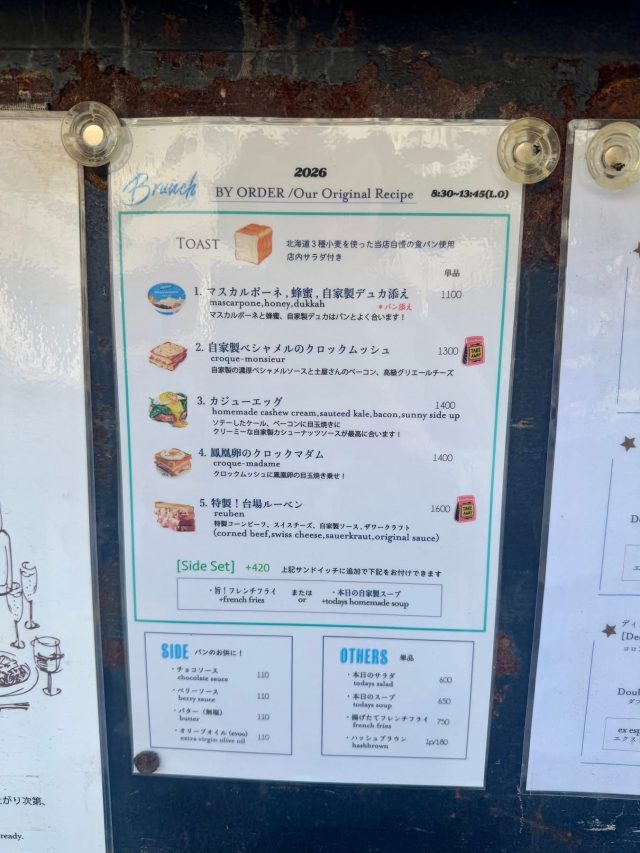ほかにも、自家製ベシャメルのクロックムッシュ、カジューエッグ、鳳凰卵のクロックマダム、特製!台場ルーベンがあります。