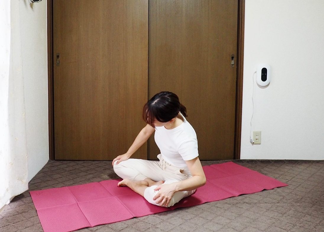 - ひざが痛くならないように、下にヨガマットやタオル(滑らないように注意!)を敷くと◎