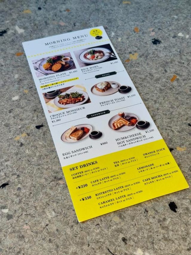 モーニングメニューはモーニングプレート、ライスボウル、クロックムッシュ、フレンチトースト、たまごサンド、ハム&チーズホットサンド。