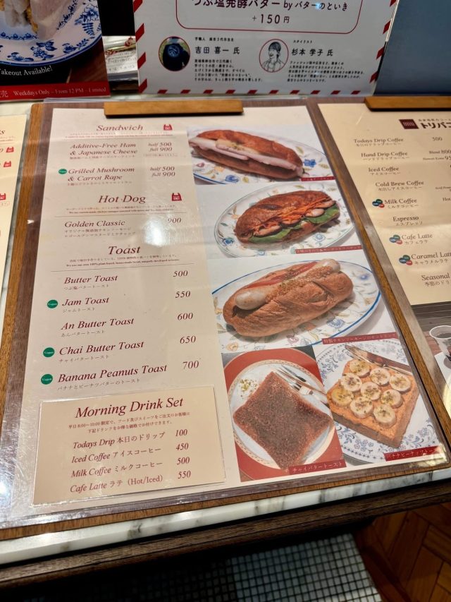 フードメニューはサンドイッチ、ホットドッグ、トーストなど。