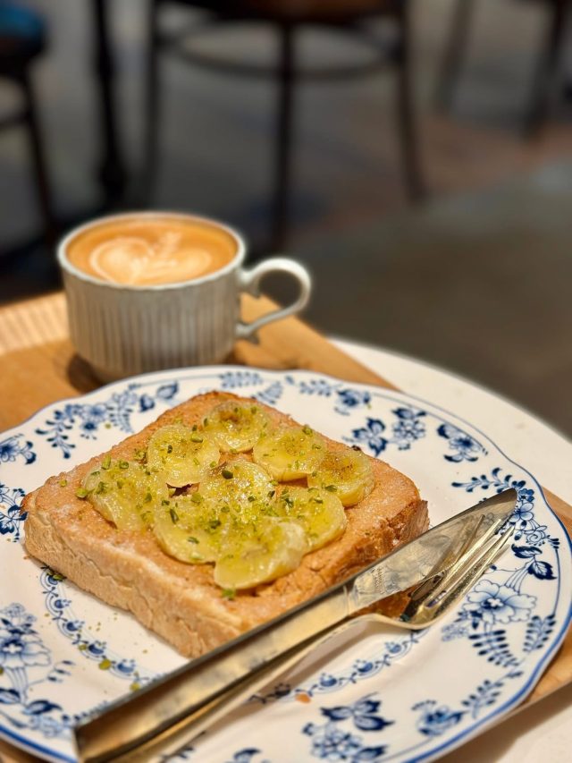 しばらくすると、出来立てのバナナとピーナツバタートーストが運ばれてきました。