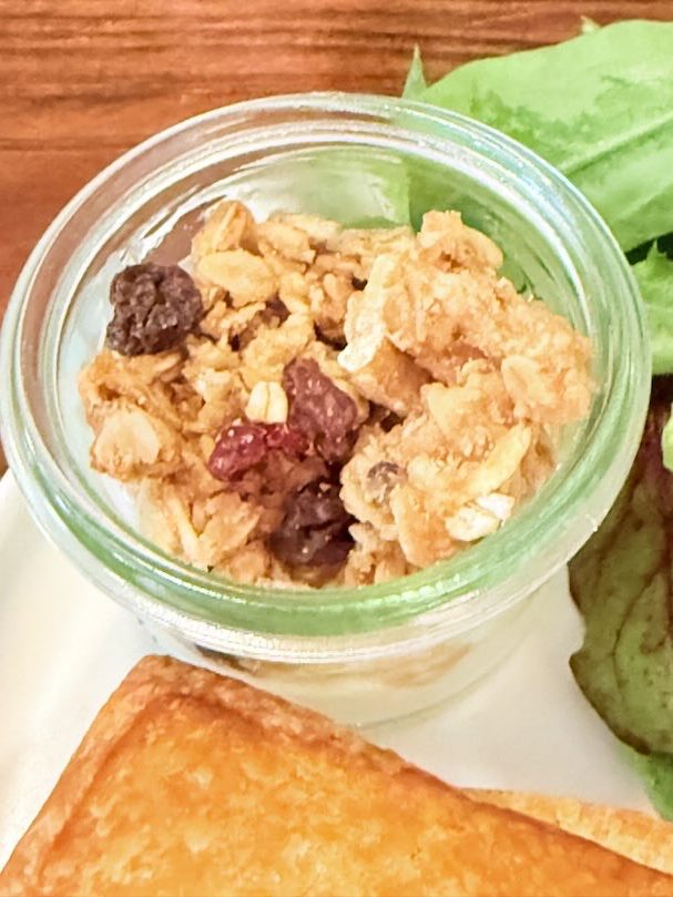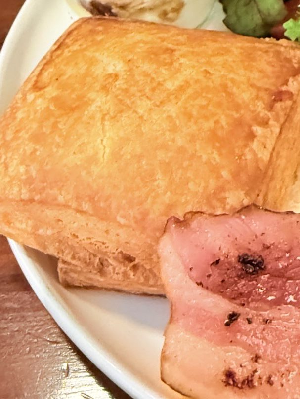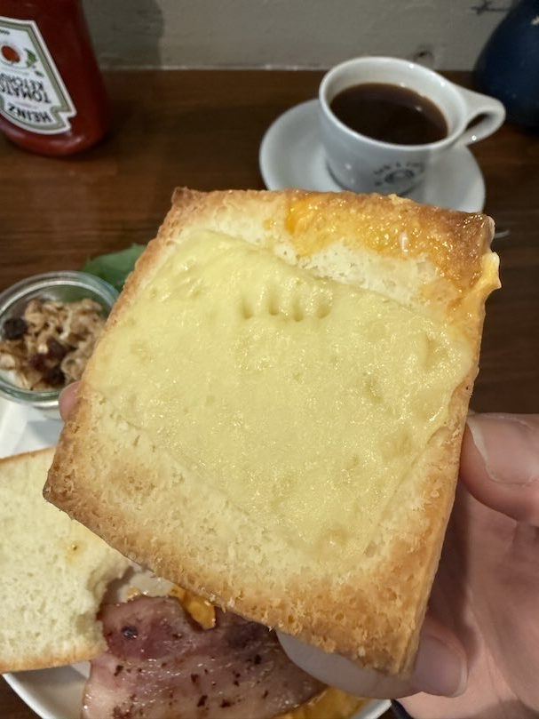 スコーンは、半分にカットされていて片方にはとろっとチーズが乗っています。スコーンとトロッとチーズっておいしいですね。チーズトーストとはまた違い、スコーンのバターの旨味をより感じられる気がします。