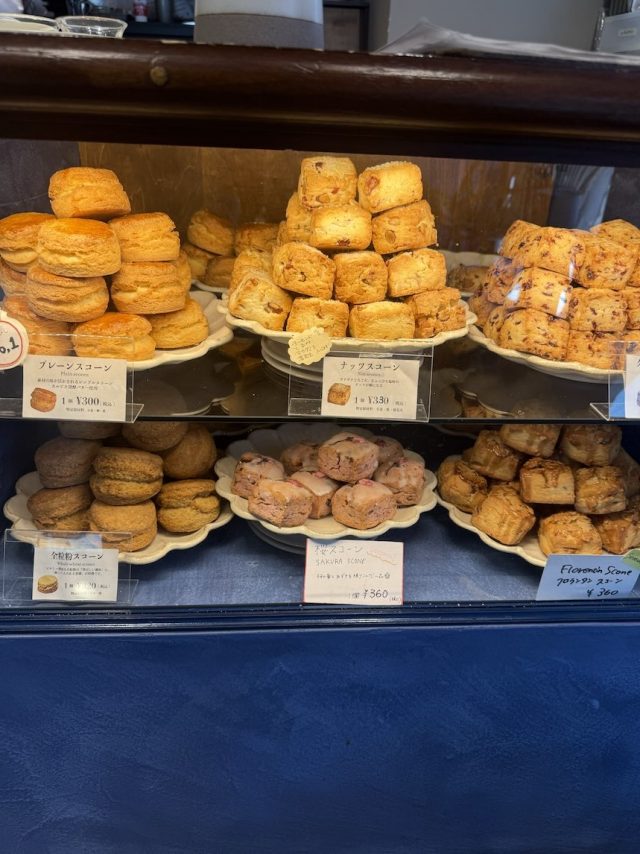 カウンターには、焼き立てのスコーンが色々。テイクアウトもできます。