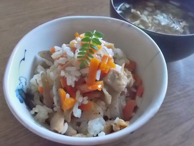 炊き込みごはんなら、鶏肉やシーフードを加えることでたんぱく質を一緒にとることができ、筋肉の材料を補いやすくなります。また、食後の満腹感も持続しやすいのが特徴です。