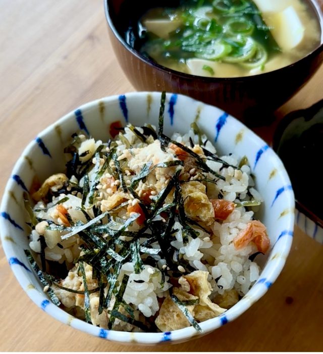 【7】炊き上がったご飯に【6】を混ぜ合わせる。お好みで刻みのりやごまをのせても◎