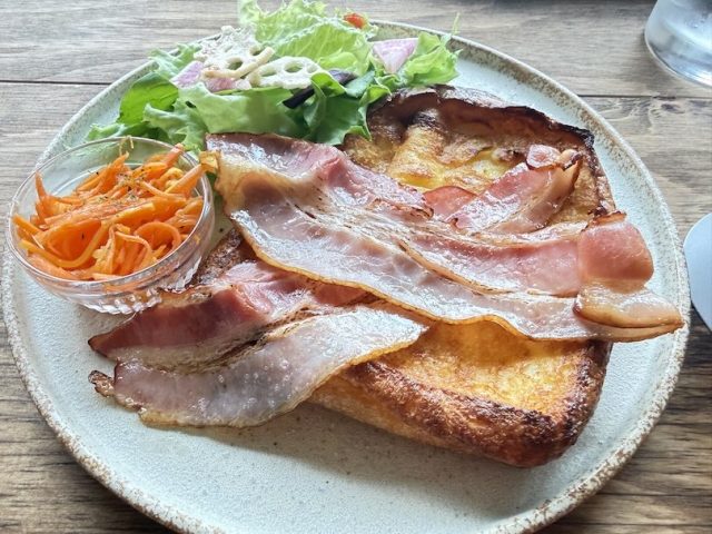 フレンチトーストセットの炙りベーコンにしました。