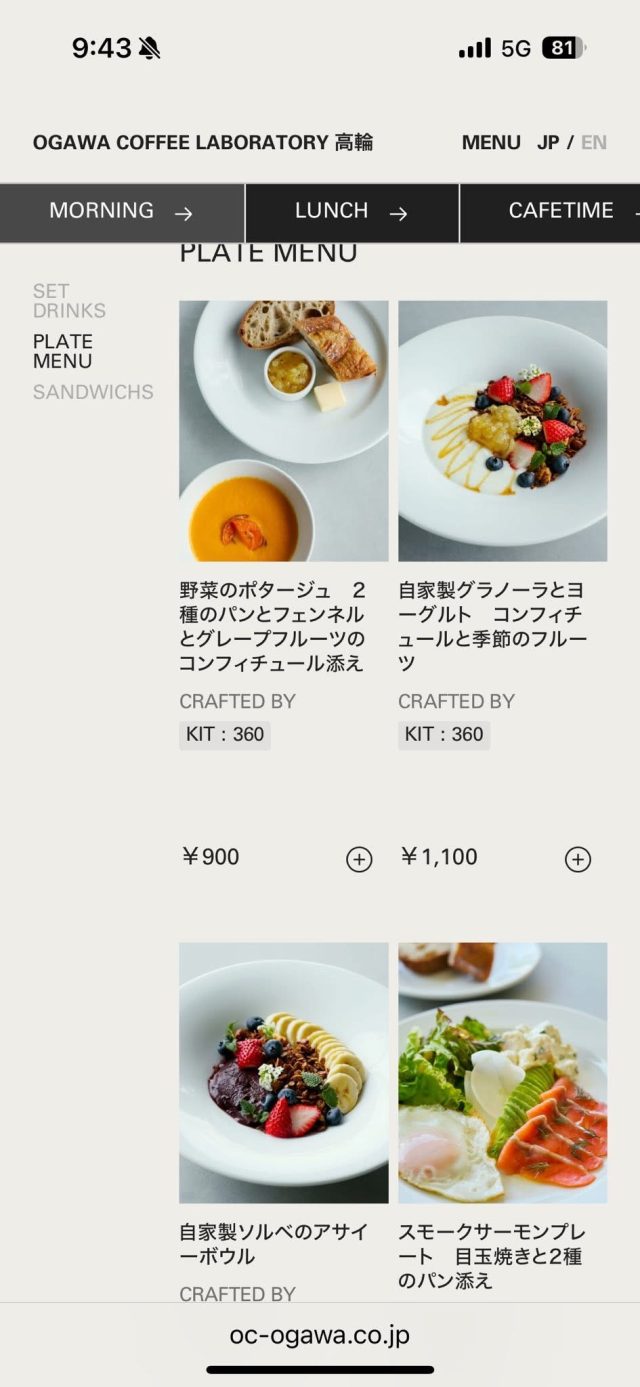 また、席のQRコードを読み取るとモーニングメニューも出てくるので、グラノーラ、アサイーボウル、スモークサーモンプレート、オープンサンドなども選べます。