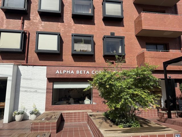 こんな日は新緑を眺めながらアイスコーヒーを飲みたい。そんな気分の朝にやってきたのは自由が丘のALPHA BETA COFFEE CLUB。かわいいれんが色の建物の1階にあります。