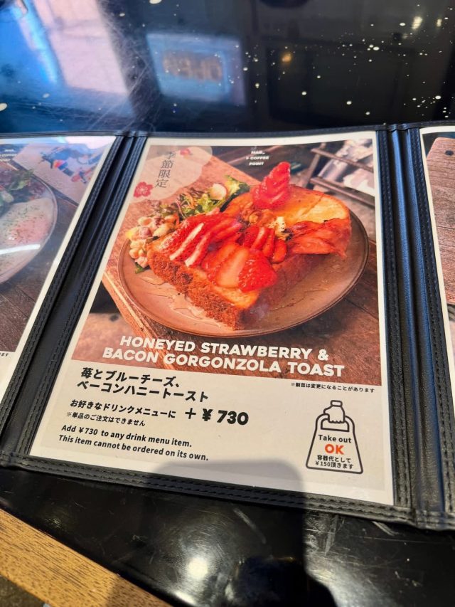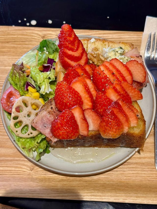 季節限定の「苺とブルーチーズ、ベーコンハニートースト」はこちら。