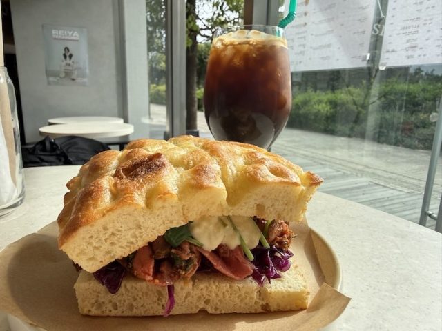 チミチュリソース、葉キャベツマリネ、パクチーが入ってこれがさっぱり爽やか。今の季節に食べたいフォカッチャサンドです。