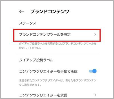 4.ブランドコンテンツツールを設定をタップ