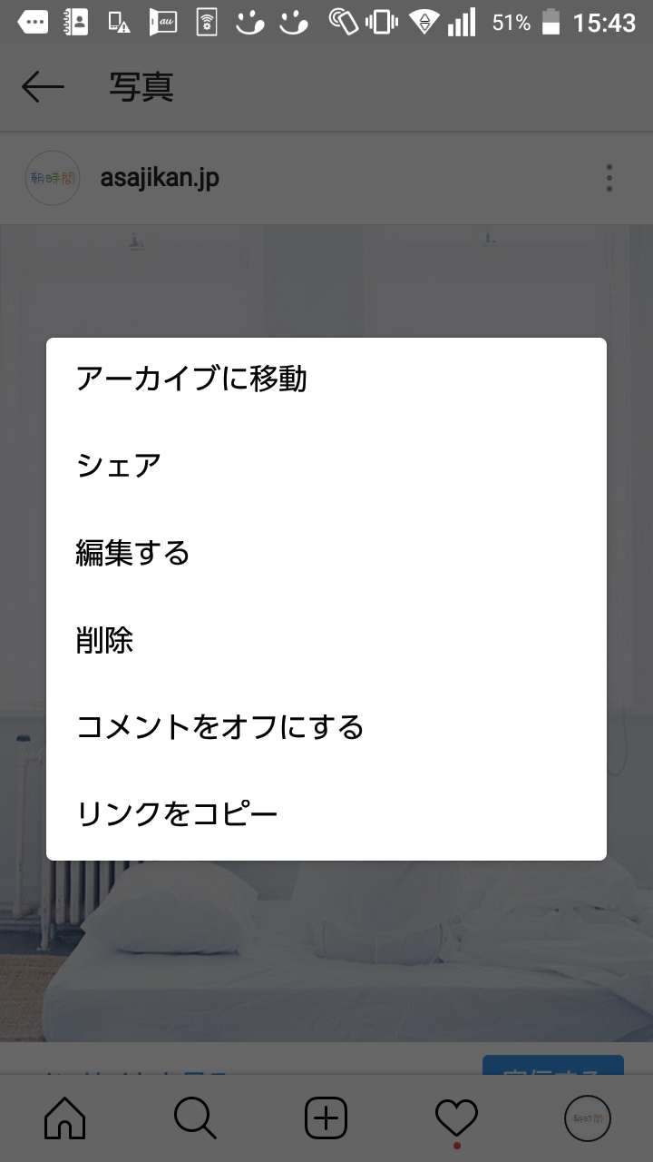 Instagramに投稿した写真のURLは以下の方法でコピーすることができます。